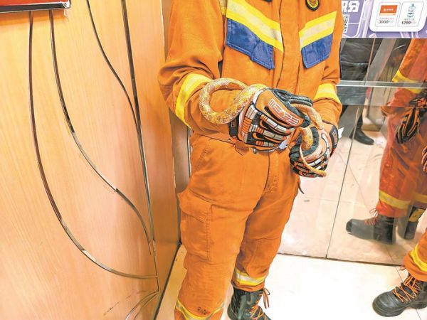 商场内宠物蛇“越狱” 消防员及时安全捕获