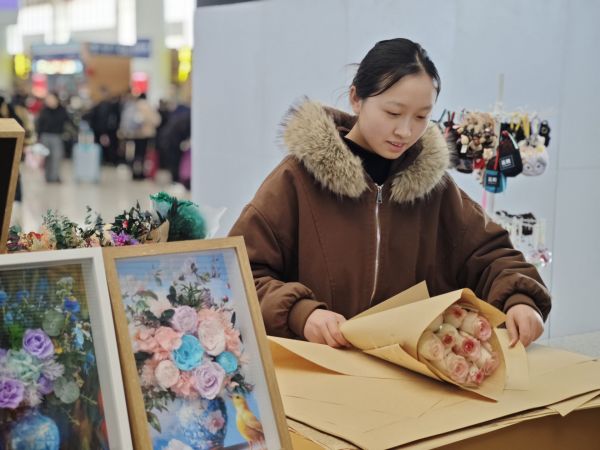 昆明南站售卖鲜花