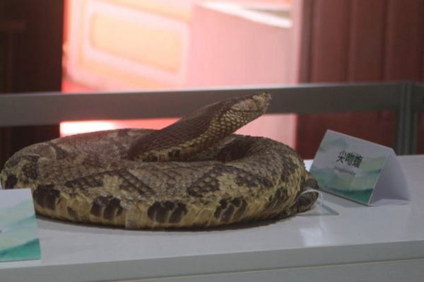 尖吻蝮(学名:Deinagkistrodon)是蛇亚目蝰蛇科蝮亚科下的一个有毒单型蛇,属下尖吻蝮的幼蛇只有尖吻蝮(D.acutus)一个品种。尖吻蝮又称百步蛇、五步蛇、七步蛇、蕲蛇、山谷虌、百花蛇、中华蝮等,是亚洲地区内相当著名的蛇种,尤其在台湾及华南一带更是自古已备受重视的蛇类。目前未有任何亚种被确认。 【 详细>>】