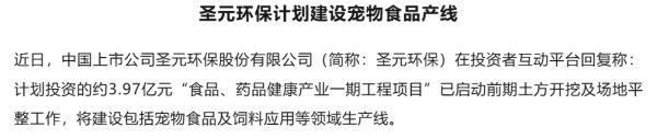 圣元环保:宠物食品在公司规划内,将在后续投入市场