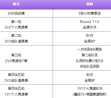 *第四、五轮模式由大分落后方选择,计时挑战赛选手不可参与1V1个人竞速赛。