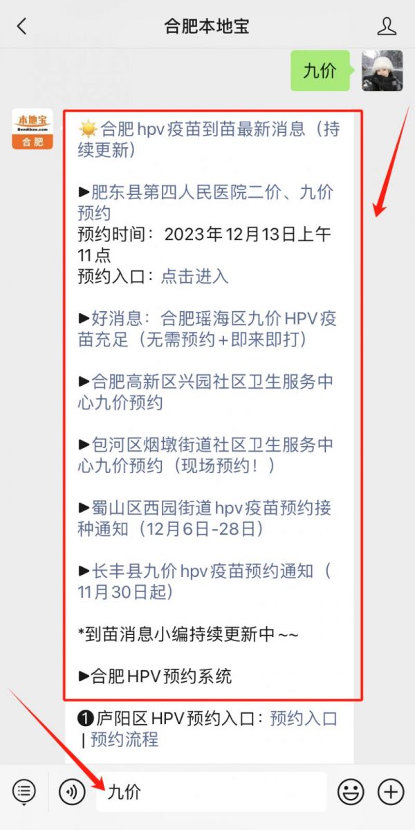 温馨提示:微信搜索并关注【合肥本地宝】公众号,在聊天对话框发送【九价】即可获取合肥九价预约入口、最新九价到苗信息、接种费用、预约时间/条件/材料等;以及二价四价最新消息!