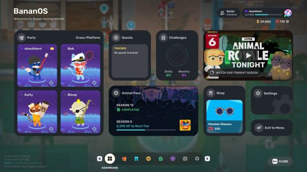 早期访问发布七年后,《Super Animal Royale》进行了近乎彻底的UI overhaul。此次 overhaul 的核心是BananOS,一个新的增强现实操作系统,每个超级动物现在都作为脑眼界面运行(…无论它们是否选择安装)。