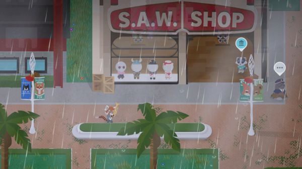 BananOS将AR界面覆盖到每个超级动物的视觉上,以便它们可以从社交中心任何地方访问应用、通知和匹配。其他曾位于菜单的系统也已带入世界物理位置,如可访问自定义和研究实验室的MTN站,以及探索岛屿时拍摄纪念照的照相亭。