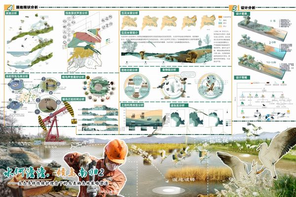 我与我们团队进行为时一到两个月的时间进行设计,途中出现过分歧争执,但是我们的出发点与目标都是一致的,将候鸟保护为基础进行候鸟栖息地营造,达到人与鸟的共生,这也帮助我们心一致。最终我们团队完成了设计。