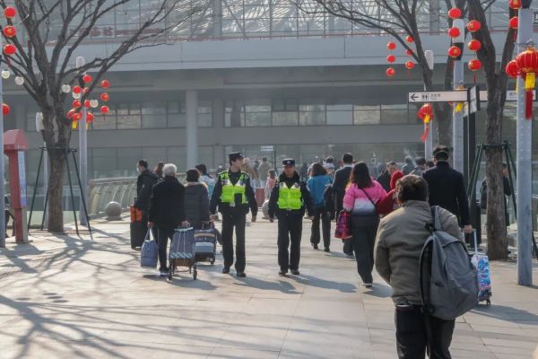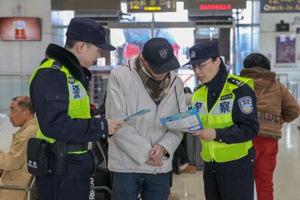 候车大厅内,旅客有序排队检票候车,行李箱与装满特产的包裹,让年味儿愈发浓厚。不少返乡旅客谈及回家,满是期待。为让旅客的返乡路更有温度,长途南站不仅推出新春转盘抽奖活动,还联合警方在候车厅开展防范购票诈骗、普及无人机禁飞政策等宣传,守护旅客财产与公共安全。