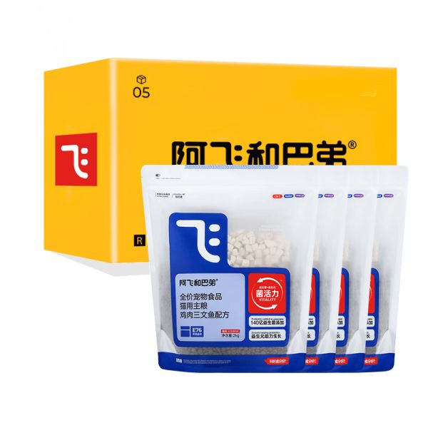 阿飞和巴弟E76猫粮:这款猫粮的突出特点在于其高蛋白和益生菌的配方。适合成猫和幼猫,提供了全面的营养支持,助力宠物健康成长。