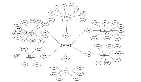 通过对猫咪咖啡馆预约系统的主要功能信息进行规划并分为若干功能实体信息,实体信息将使用E-R图加以表示,将“购物车、用户、系统简介、客服中心、收藏、公告信息”等作为实体,它们的局部E-R图,如图4-5所示: