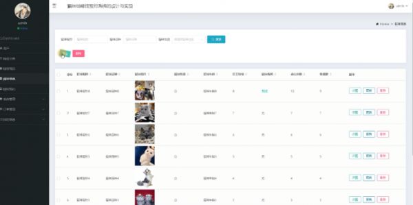 猫咪信息:在猫咪信息页面的输入栏中输入猫咪昵称和猫咪品种进行搜索,可以详情到猫咪详细信息;猫咪信息页面如图5-4所示:
