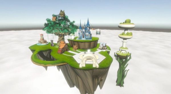 中心喷泉广场作为核心区域,四周分布医院、商店、城堡、传送门等功能建筑,整体风格统一且充满童话质感。蜿蜒小路与悬空桥梁串联起各个场景,玩家可自由探索、随心穿梭,在精致细腻的3D建模中,收获沉浸式视觉与交互体验。