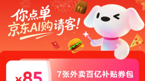 京东AI购请客!春节下单领85元外卖百亿补贴券