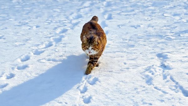 网友在北京大觉寺拍到一只猫咪雪地漫步,为何会精准踩着自己的脚印走?