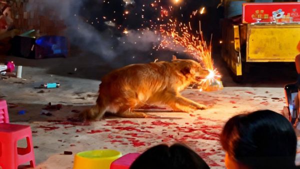 疯了疯了!云南一金毛竟叼走正在燃放的烟花,它为何会有这么冒险的行为?