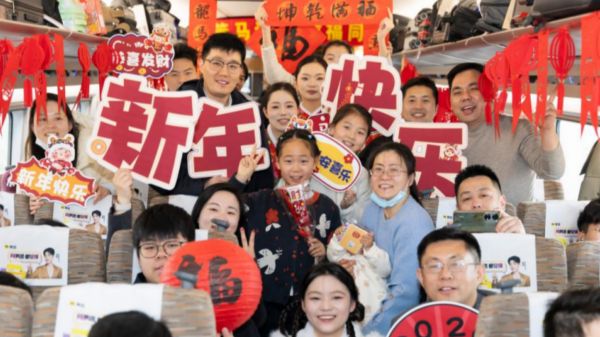 2月15日是春节假期首日,一场别开生面的“列车春晚”在上海虹桥开往汉口的G452次复兴号列车上举行。2月15日是春节假期首日,一场别开生面的“列车春晚”在上海虹桥开往汉口的G452次复兴号列车上举行。