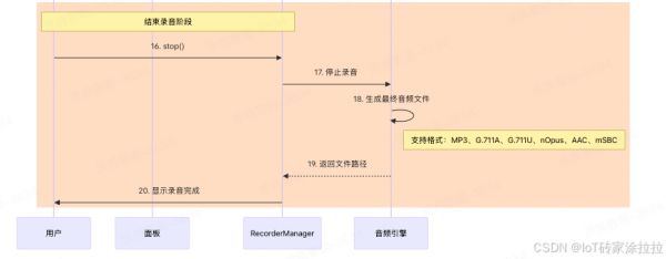 开发者可通过 RecorderManager.stop API 停止录音。