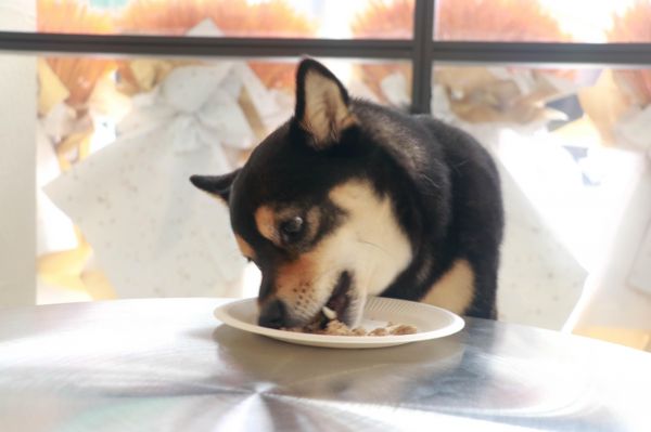柴犬“滚滚”享用美味的鲜食。彭丽桦 摄