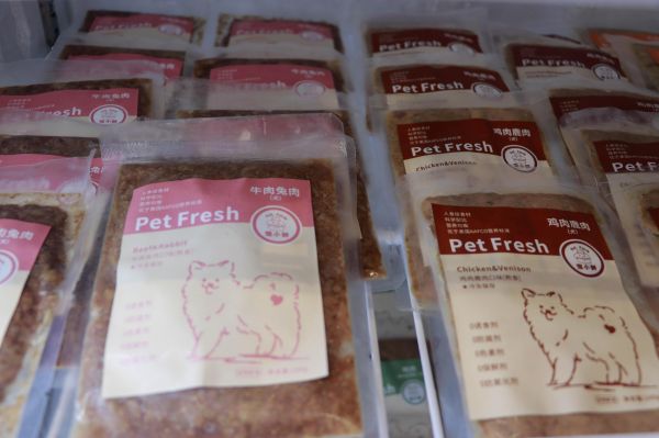 不少宠物主将宠物看作家庭里的成员,非常关注宠物的生活质量。店主李勇告诉记者,自己家就是一个例子,最初了解到宠物鲜食,是为了给自家柴犬“滚滚”减重。