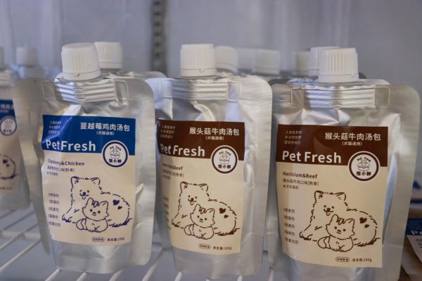 不同口味的宠物鲜食产品。彭丽桦 摄