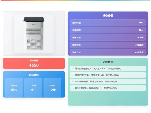 内置紫晶材料,能够快速破解空气中的甲醛分子,适合宠物家庭和过敏体质的家人使用。