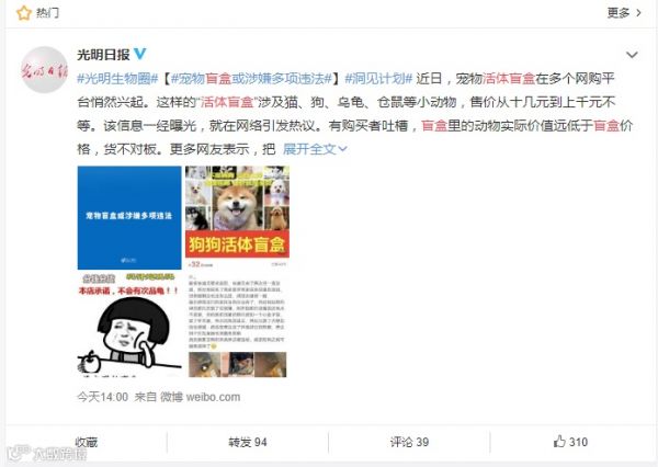 近日“宠物盲盒”的话题