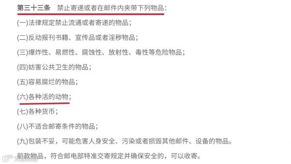 《邮政法实施细则》第33条明确规定禁止寄递各种活的动物;《快递暂行条例》也明确规定,快递业务企业发现寄件人交寄禁止寄递的物品,应该拒绝收寄。