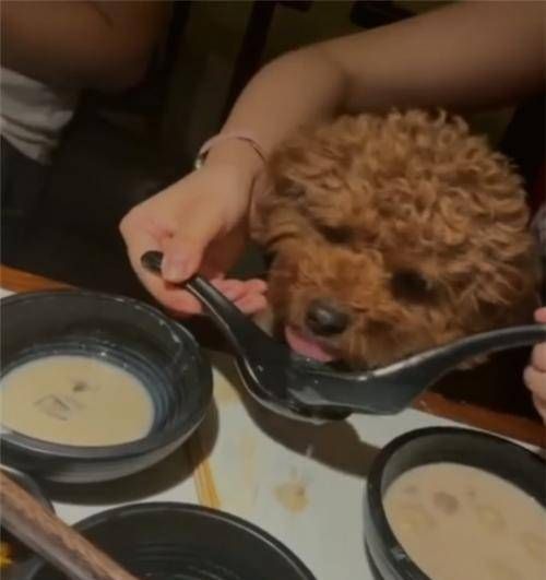 餐厅内顾客居然用汤勺喂宠物狗,网友直接炸了,餐厅:餐具已丢弃