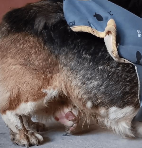 狗狗肚子上的肿瘤已经拖到了地上