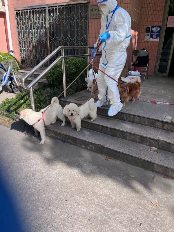当我把我朋友牵着狗的照片发到了社交平台上之后,有很多人都来联系我,想让我帮忙转运家里的宠物,有些主人因情绪激动甚至还哭了,我比较心软,一开始也加了一些人的微信。但是后面,我实在是忙不过来,防控要求严格,我做志愿者,本身也很难每次都能找到合适的方法把宠物转运出来,所以对于大部分情况不那么危急、还没被要求进入方舱医院的宠物主人,我都会建议他们:不到万不得已,不要把宠物转运出来,毕竟本身这件事也是有一定风险的。我更多的是教主人们如何对宠物进行消毒和护理,希望能在最大程度上帮到他们。