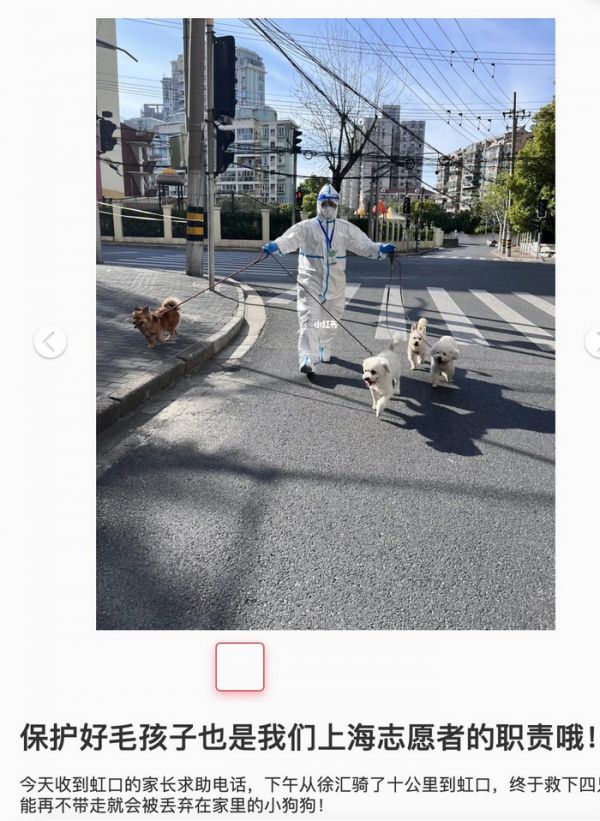 截屏图“保护毛孩子也是我们上海志愿者的职责哦!”4月9日,网友“牧场小羊”发布在社交平台上的一则信息,收获了网友们的好评。