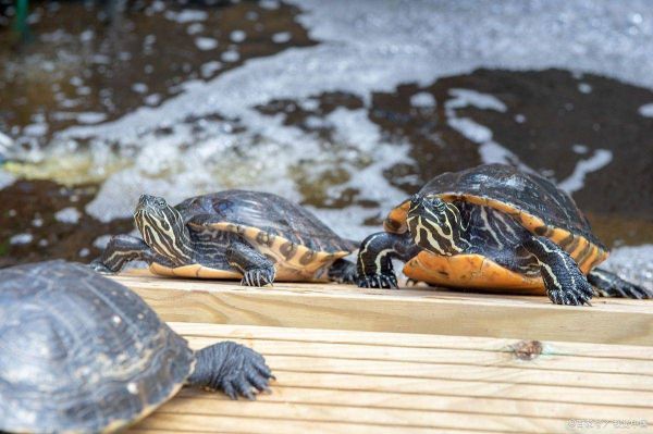 ① 水栖龟(巴西龟、草龟、花龟):水域占比可提高到80%,晒台面积适中,水质要更注重清洁,水温控制在24-28℃。