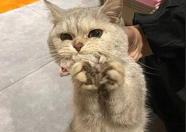 店家并非空口说白话,配图正是猫咪咬死仓鼠后,被抓的模样。猫咪用两只前爪狠狠爪子猫咪,并做出一副要把仓鼠往自己嘴里送的模样。