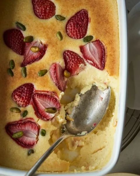 这一款蛋糕看着就充满了春天的氛围感,酸甜的草莓佐以绿意盎然的开心果,仔细摆个盘的话,还能绘制出一幅油画般的视觉盛宴。