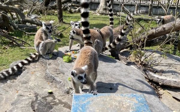 虽然已经闭园,但是饲养员环尾狐猴训练工作却没有停。动物行为训练是指通过人类与动物的交流和沟通,达到动物自主学习、展示自然行为的目的。通过开展行为训练,可以加强圈养动物的行为多样性,让动物在一个更加宽松舒适的环境中生活。