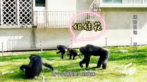 黑猩猩家族是由四只成年的雌性黑猩猩以及两只宝宝组成,两只黑猩猩宝宝分别叫“瑶瑶”和“乐芙”。由于黑猩猩和人一样,是长生长周期的生物,这两只黑猩猩宝宝还在慢慢长大。