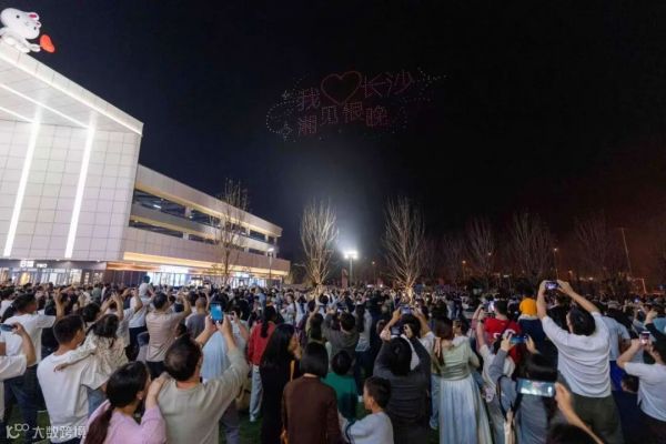 杉杉奥莱打造多元消费场景,点亮“夜经济”。图为无人机灯光秀。长沙杉杉奥莱供图