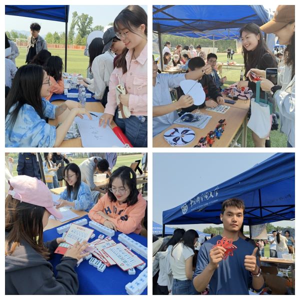 除此之外还有“四川方言大闯关”板块,以趣味横生的方言竞猜游戏,吸引了众多参与者。经典的脸谱翻翻乐游戏不仅增加了活动的趣味性,参与者还获得精美脸谱玩具作为奖励。剪纸活动让参与者体验了传统艺术的魅力,更有川麻猜胡牌游戏为活动增添了浓厚的四川地方特色,吸引了许多同学参与其中。