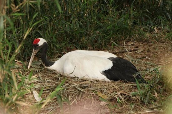 丹顶鹤也在为自己的小家忙碌,用柔软的稻草给自己搭个爱的小窝。