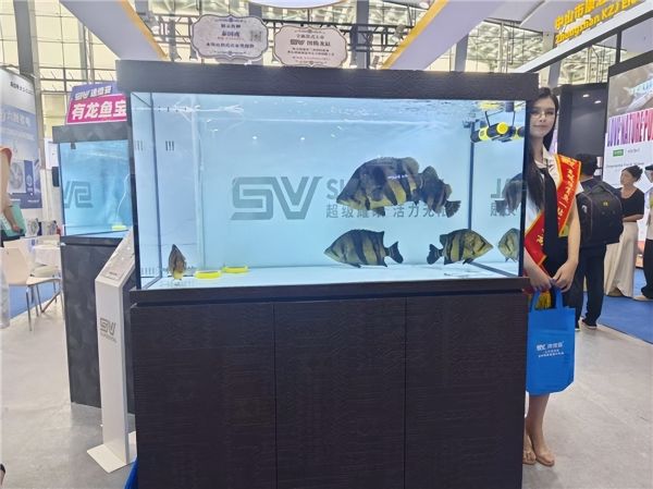 展会全新亮相的SV图腾龙缸尤为吸睛,欧式米兰格调柜体融合神秘图腾工艺,缸内水质清澈、鱼儿状态俱佳,尽显品牌实力。