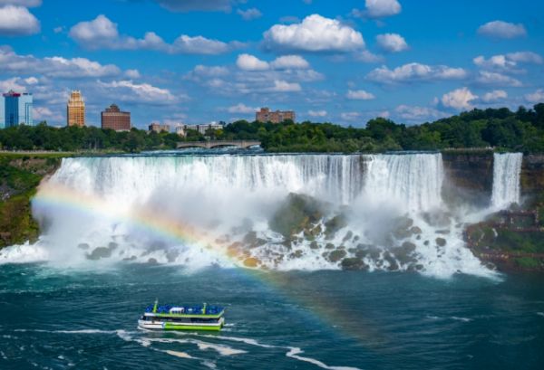 A popular Niagara Falls State Park attraction for more than 150 years, the Maid of the Mist journey begins at the Observation Tower, where guests are given a souvenir rain poncho to wear and board the double-deck Maid of the Mist tour boat. From there, the boat ferries past the base of the American Falls, and onto the basin of Horseshoe Falls — the dramatic passage leading you through the roiling waterfall whitewater and massive rock formations. The Maid of the Mist returns guests to shore with newfound appreciation of the power and grandeur of Niagara Falls.
