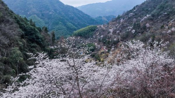 近日,浙江省建德市三都镇数万亩野生樱花进入盛花期,以“天路寻樱·山野赴春”为主题的2026建德三都春季山花旅游季活动在前源村盘山公路核心赏樱区开启。漫山遍野的粉色、白色野樱花次第绽放,将山乡装点成春意盎然的美丽画卷,吸引众多游客前来打卡。