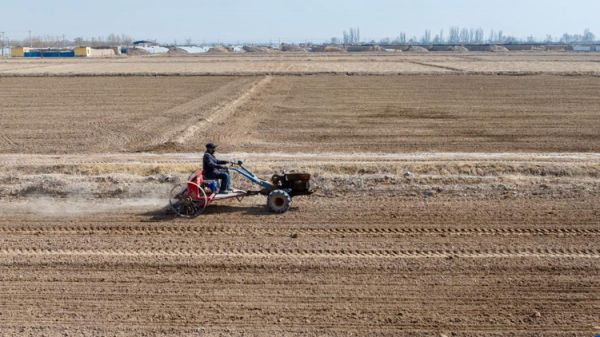 近日,宁夏银川市贺兰县的农民积极开展小麦春耕备耕,田间地头一片繁忙的景象。