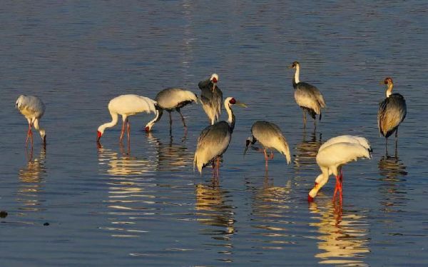 这是栖息在鄱阳湖保护区内的候鸟(1月18日摄)。白鹤等越冬候鸟驻足鄱阳湖保护区(2月13日摄)。” 吴城保护站内有一所候鸟“疗养院”,这个模仿鄱阳湖自然生境打造的小微湿地,是保护区的候鸟救助中心。
