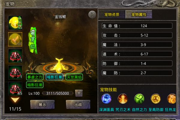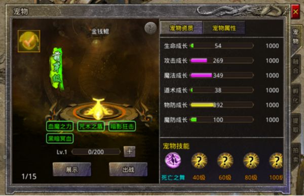 - 宠物每20-40-60-80-100级会开启一个技能,已解锁的技能可提取功能提取到背包中