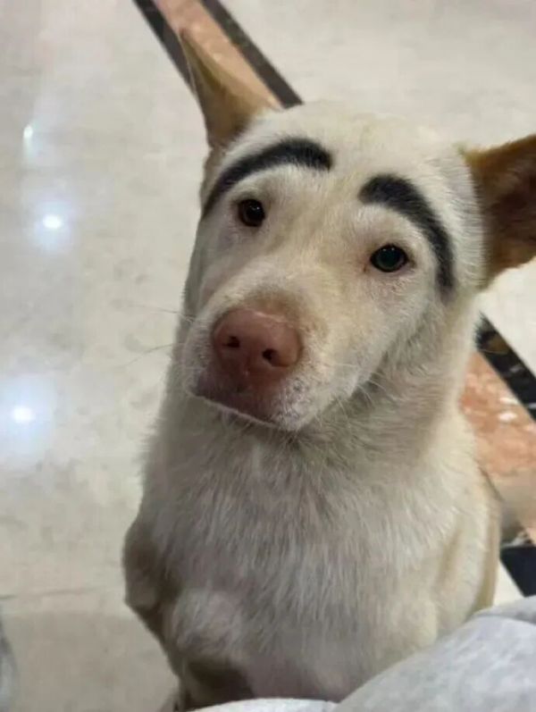 谢女士说,狗狗养了接近三年,小时候眼睛小小的很可爱,谢女士给它取名“荣浩”。因为她还是大学生,平时狗狗养在爷爷奶奶家,爷爷奶奶很宠爱它,怕它走失还画了粗粗的眉毛。谢女士遛狗的时候,很多路人都很喜欢它,还给它拍照。