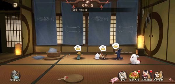 后院里有猫猫狗狗不同的宠物,这些宠物可以在每天的首次御魂挑战中进行协战,可以为主人带来不同的加成效果以及协战奖励。
