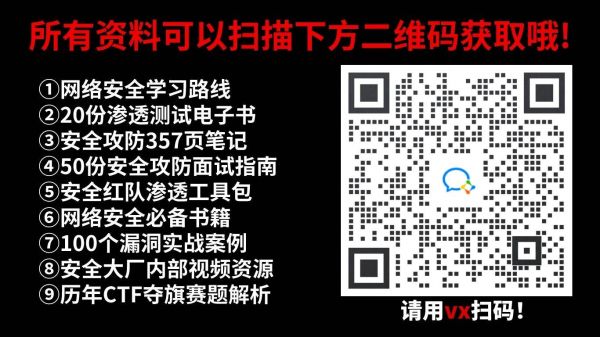 这里我整合并且整理成了一份【282G】的网络安全从零基础入门到进阶资料包,需要的小伙伴可以扫描下方CSDN官方合作二维码免费领取哦,无偿分享!!!