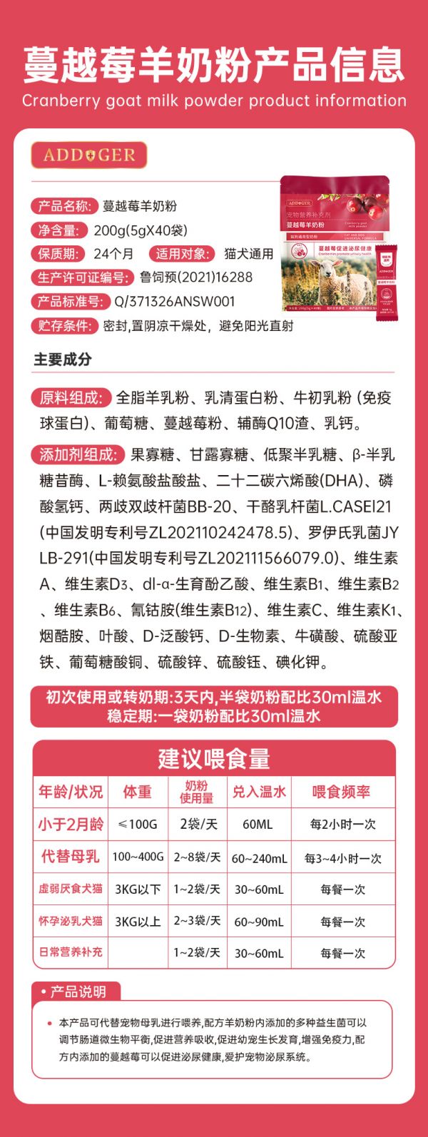 ADD蔓越莓宠物羊奶粉幼猫咪狗狗专用奶粉小猫幼犬保护心脏补钙