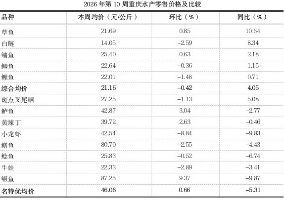 2026年第10周重庆渔业市场周报(总第158期)