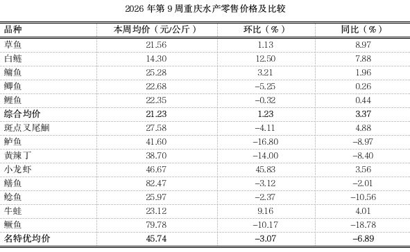 2026年第9周重庆渔业市场周报(总第157期)