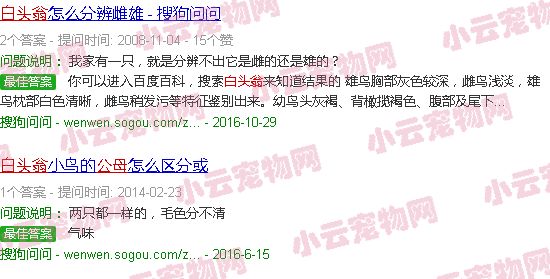 白头翁鸟公母对照表